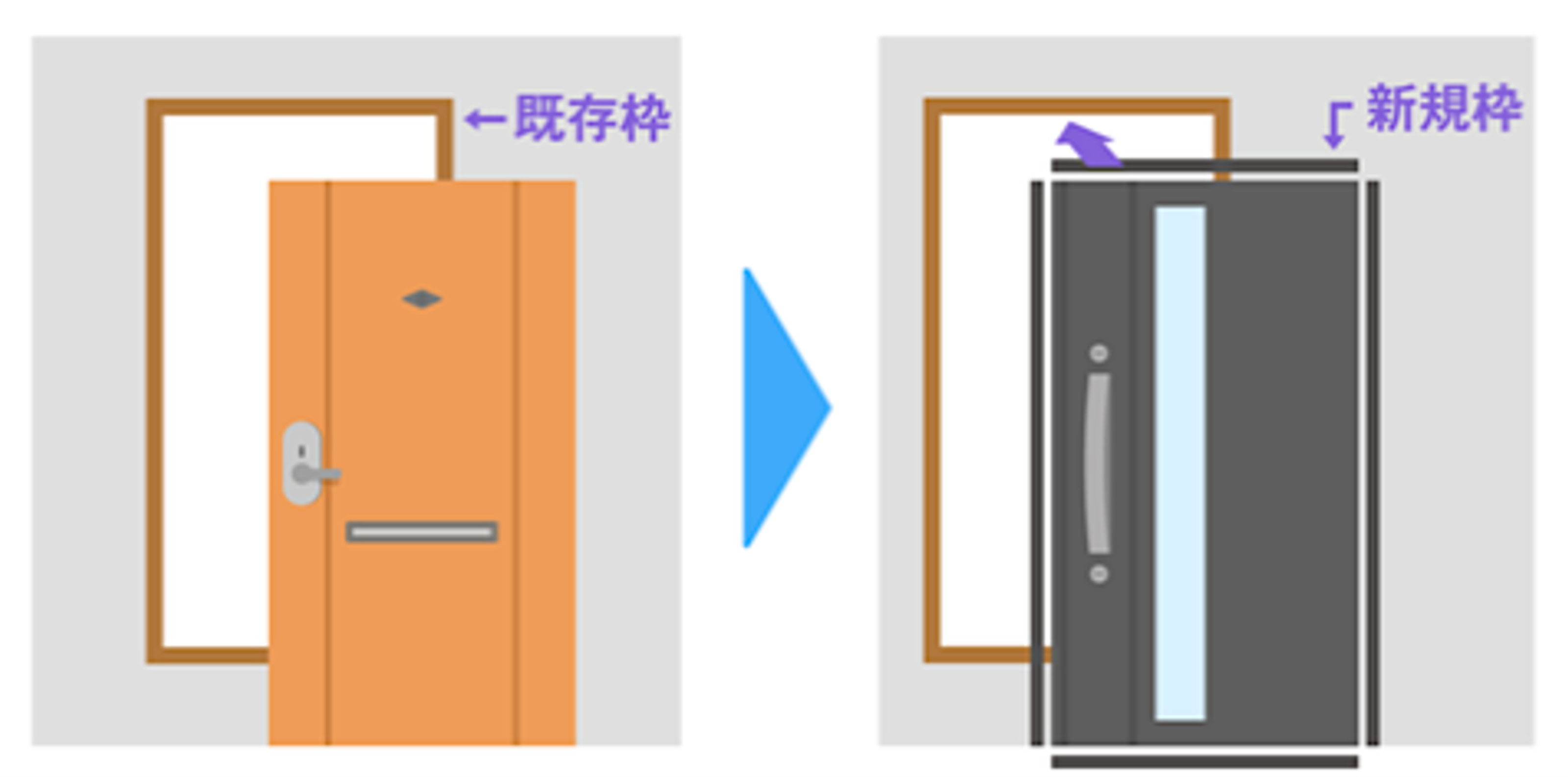 | ドア交換 | カバー工法もしくは、はつり工法で既存ドアを交換すること | |