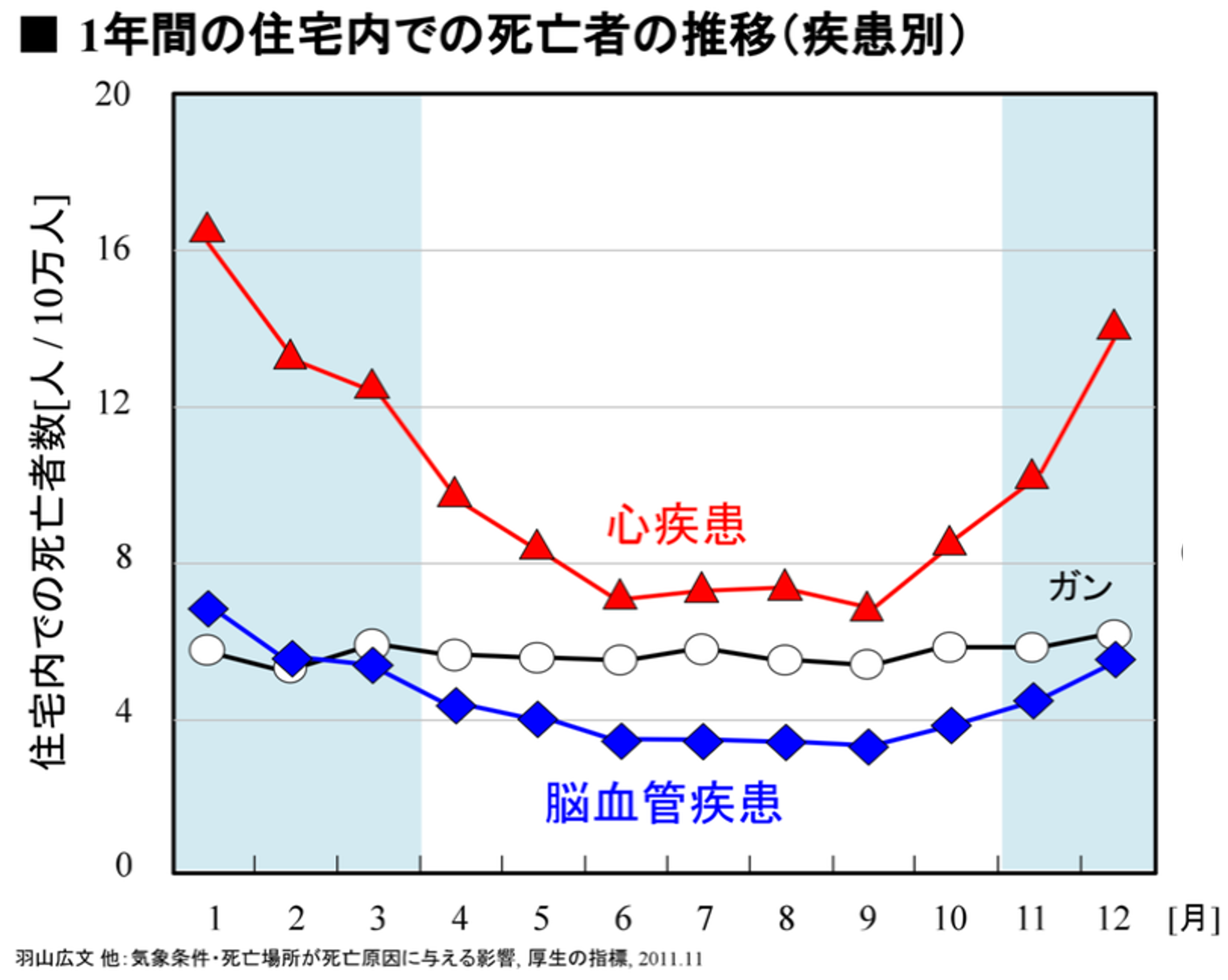 急増する冬季の住宅内における循環器疾患による死亡者数